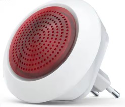 This alarm light/siren combo plugs into a socket but connects via Zigbee to Home Assistant. I only use the red light, if there is a problem with the battery/energy system in the garage or the battery is under 10%.