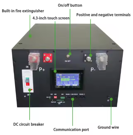 It comes with a 200A JK-Inverter BMS V19, 4.3″ touch screen, 250A bidirectional circuit breaker with 50kA breaking capacity plus a 300A fuse (!) and aerosol fire extinguisher.