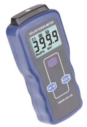 Great and easy to use tester which measures the solar intensity and power in W/m2. Simply turn it on and it starts displaying the power coming from the sun. It’s also ideal to orientate solar panels the optimal way so they point perfectly towards the sun.